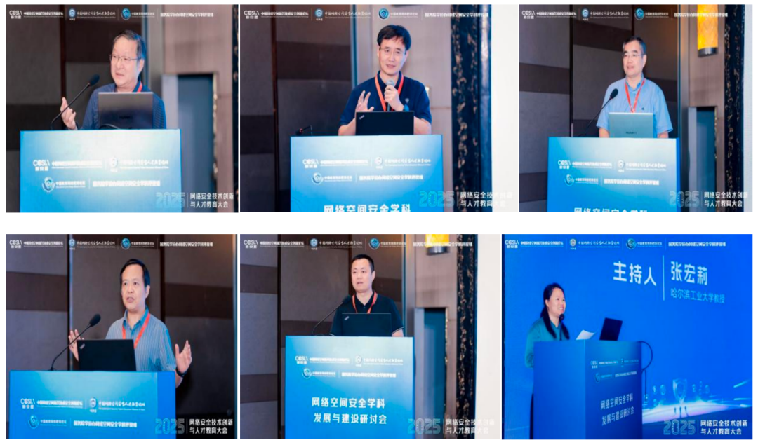 会议邀请了中国科学院大学李凤华研究员、北京航空航天大学刘建伟教授、南开大学刘哲理院长、郑州大学石磊副院长、浙江理工大学姚菊明副校长等高校专家和领导为大会做报告,从“新时代视野下学科建设与人才培养”、“网络空间安全专业规范化知识体系构建及深度解析”、“南开大学密码学科建设经验分享”、“网安实战型拔尖人才培养实践与探索”、“智联信息 网安赋能 助力登峰学科建设等网安学科建设”等方面介绍了网络安全学科建设和人才培养工作中的最新进展和实践成果,同与会者进行了深入交流和研讨。哈尔滨工业大学张宏莉教授主持会议。